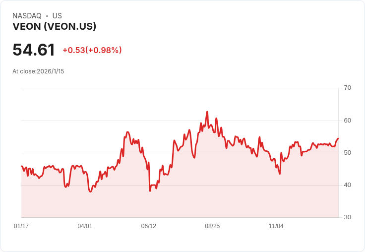 隨著VEON(納斯達克股票程式碼:VEON)最近股價回報率達到0.98%,該公司作為一家電信及數位服務運營商吸引了投資者的注意。VEON目前股價為54.61美元,年初至今回報率為3.62%。根據最新分析,其一年總股東回報率高達18.98%,顯示出多年的增長勢頭。