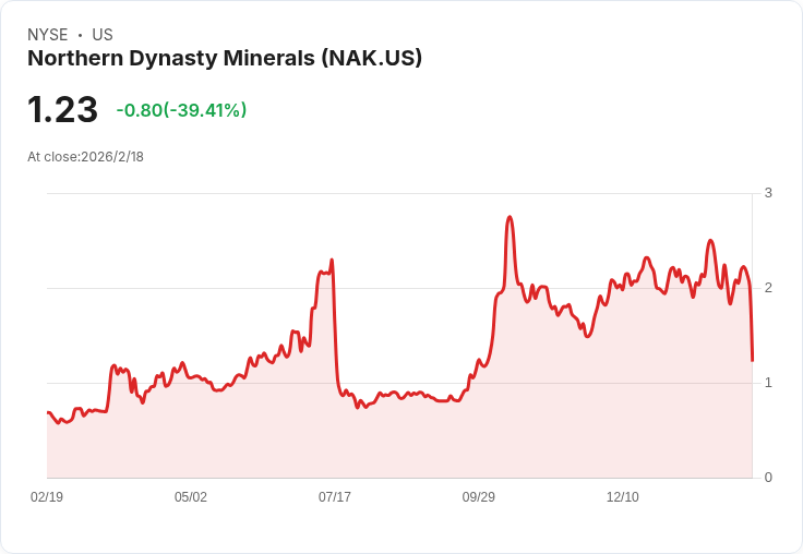 北方王朝礦業(Northern Dynasty Minerals, NAK)在週三交易中股價驟降37.6%,達到近四個月以來的新低。這一劇變源於美國司法部向阿拉斯加地區法院提交了一份法律檔案,表態支援環境保護署(EPA)對該公司Pebble採礦項目的否決。北方王朝總裁兼首席執行官Ron Thiessen表示,他們對政府不顧先前推動能源發展及重要金屬開採的承諾而選擇維護“非法”的奧巴馬-拜登時期否決感到意外。