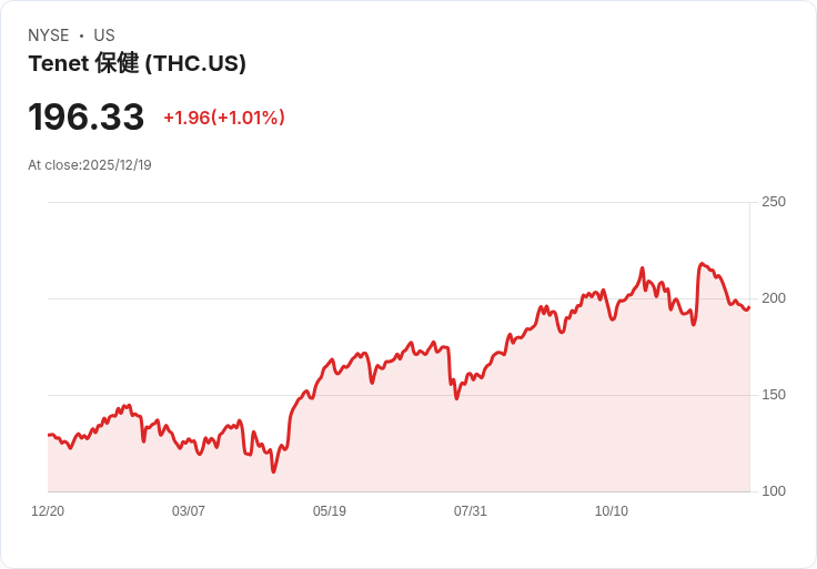 十年醫療(Tenet Healthcare, THC)今年成為醫療領域的一匹黑馬,股價自年初以來上漲約57%,三年內總回報更是超過320%。這一強勁表現使得投資者質疑該公司是否仍被市場低估,尤其是在其每股盈餘比率僅為12.7倍的情況下,相較於同行業的23.9倍及美國醫療行業的23.6倍,明顯顯示出其潛在的增長空間。
