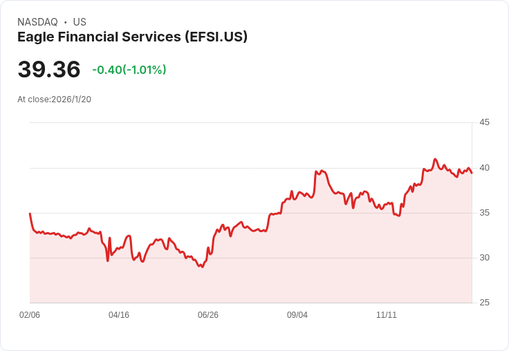 Eagle Financial Services 公佈每股 $0.31 的季度股息,繼續保持穩定的分紅政策,吸引投資者關注。