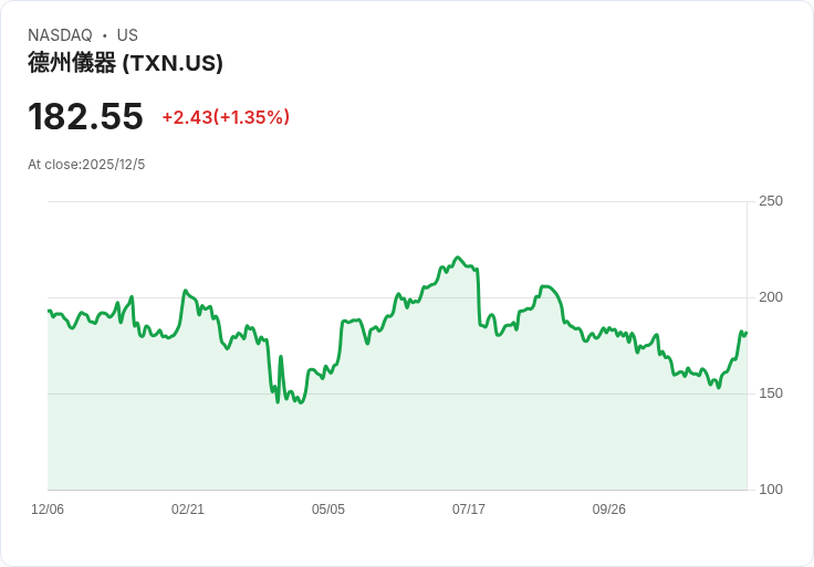 德州儀器(Texas Instruments Incorporated, TXN)近期引起市場熱議,特別是在Rijnberk InvestInsights上發表的一篇看漲論文中,強調了該公司的未來潛力。截至12月3日,TXN股價為182.60美元,市盈率(P/E)分別為30.63和24.81。