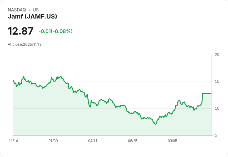 Jamf Holding 收購案後,分析師對其股價目標從 $13.46 降至 $12.76,顯示出市場對公司長期增長的疑慮。