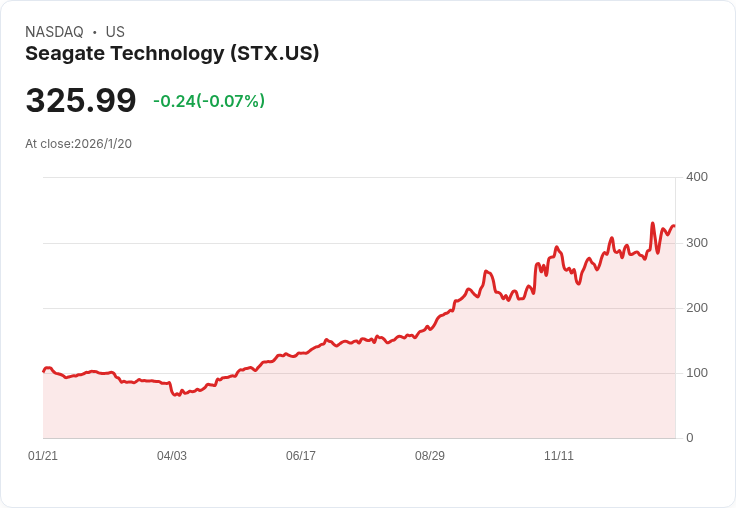 Seagate Technology因BNP Paribas將其評級從中立提升至優於大盤而股價上漲2.9%。分析師預測硬碟市場將在2028年前持續增長。