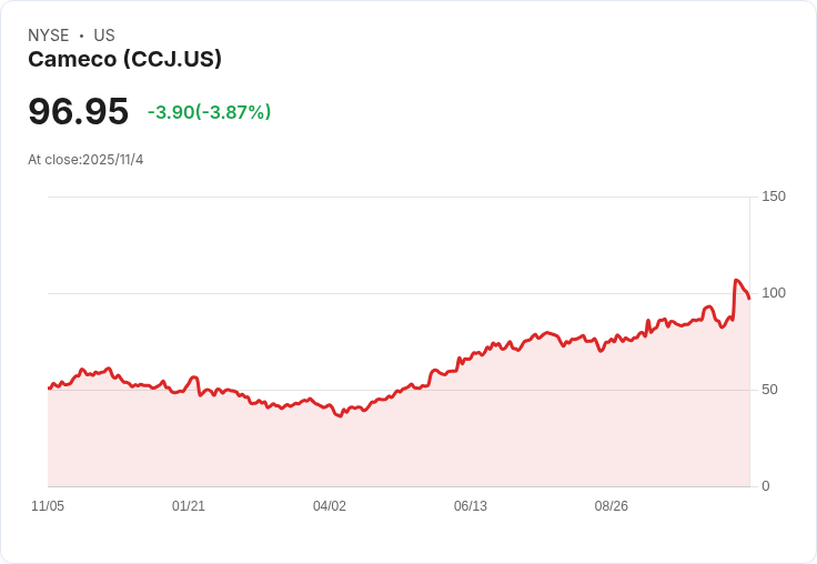 在最新財報發布之際,加拿大鈾生產商Cameco Corp.(NYSE:CCJ)面臨重大挑戰,其股價在公佈第三季度業績後下跌了4%。儘管營收表現超出預期,Cameco的調整後每股盈餘卻僅為0.07加元,與分析師預測的0.23加元相距甚遠。該公司報告顯示,第三季營收達到6.15億加元,雖然高於市場共識的5.68億加元,但較去年同期的7.21億加元下降了15%。