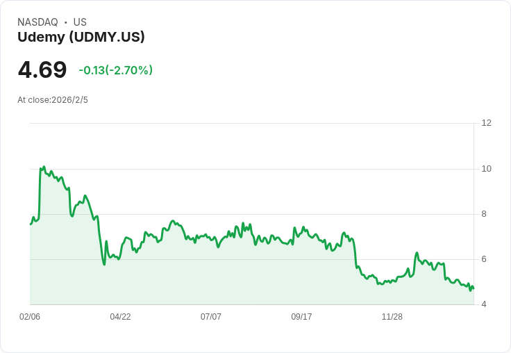 在線學習平臺Udemy(NASDAQ:UDMY)於Q4 CY2025公佈了其財報,營收達194百萬美元,符合華爾街預期,但較去年同期下滑3%。非GAAP每股盈利為0.12美元,超過分析師預測的0.10美元,顯示出公司在面對挑戰時仍具備一定的韌性。