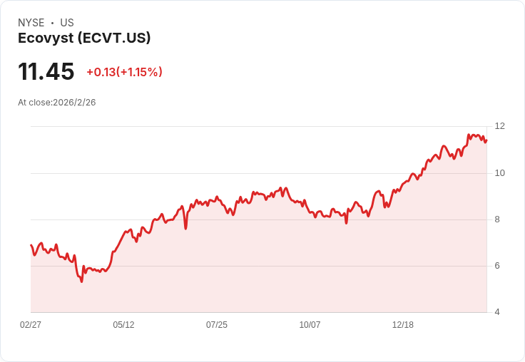 Ecovyst Inc. 預計2026年銷售將達860M至940M美元,CEO表示公司在第四季表現出色,完成資產剝離後專注於可持續成長。