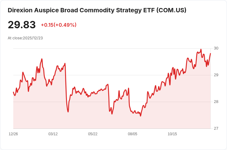 Direxion Auspice廣泛商品策略ETF將於2025年12月31日支付每股0.1156美元的季度配息,登記截止日期為12月23日。
