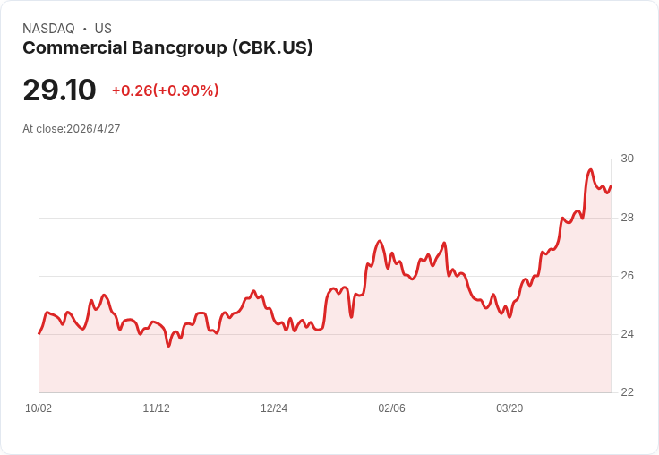 新聞 : 商業銀行集團(NASDAQ: CBK)公佈第一季財報,非GAAP每股盈餘(EPS)為0.73美元,較市場預估高出0.05美元;營業收入為2310萬美元,年增6.0%,並較預期高出約40萬美元。這份成績在當前金融環境下顯示公司在營運與收益面具備一定韌性。