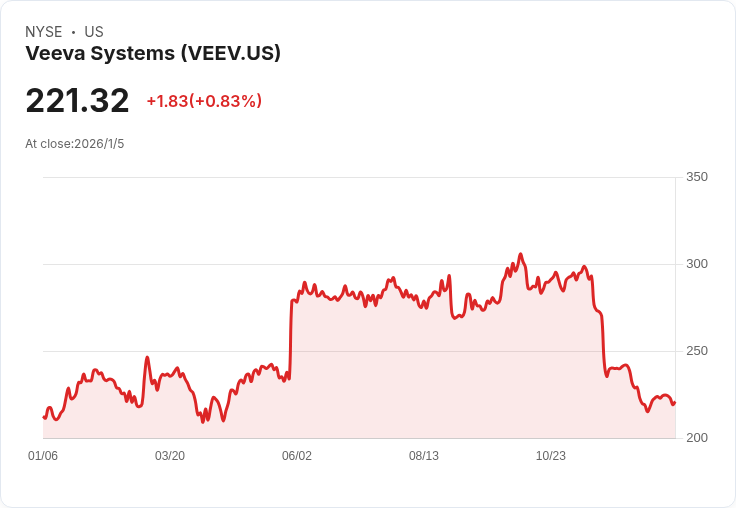 根據最新報導,在訊息公佈後,Veeva 的股價在盤後交易中微幅上升至每股 225.0 美元,增長約 1.66%。儘管面臨近期的賣壓,分析師對公司的前景仍持謹慎樂觀態度,尤其是在 Q3 財報超出預期及指導提高的背景下。