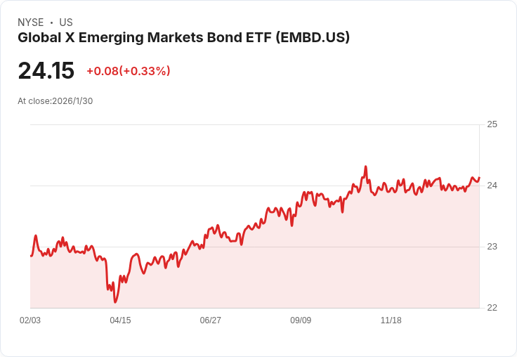 全球X新興市場債券ETF (EMBD) 宣佈將於2月5日支付每股$0.1150的分紅,登記截止日為2月2日。