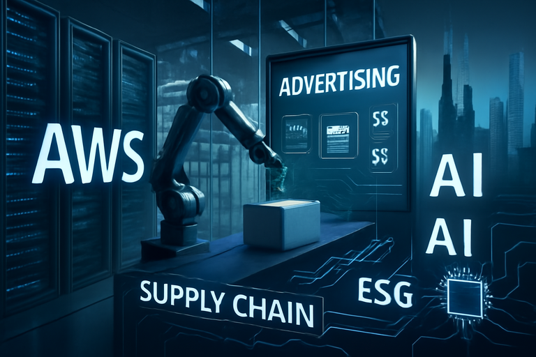 亞馬遜以北美與國際電商為流量與現金轉換池,AWS提供高毛利、可預測的企業雲端與AI基礎設施,廣告業務則憑藉零售與Prime生態資料優勢快速放大。其商業模式特徵為:電商規模化壓低單位成本、會員經濟提高留存與頻次,並以AWS與廣告拉升整體毛利與自由現金流。產業地位上,亞馬遜在北美電商為龍頭,雲端與微軟Azure、Google Cloud鼎足而三,廣告市場則以轉化效率見長、對品牌與中小賣家具粘性。競爭優勢可持續性來自規模、資料、供應鏈與自研AI/晶片堆疊。
