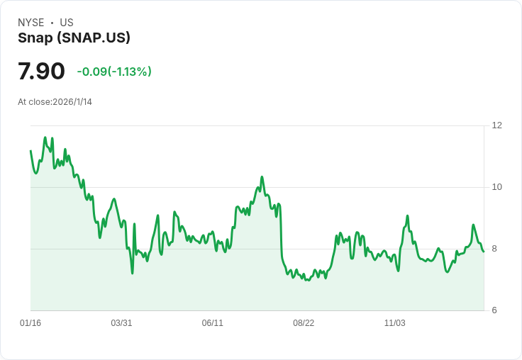 Snap(SNAP)股價持續下跌,近期累計損失超過8%。儘管與新合作有望推動增長,但分析師對該股的未來仍持謹慎態度。