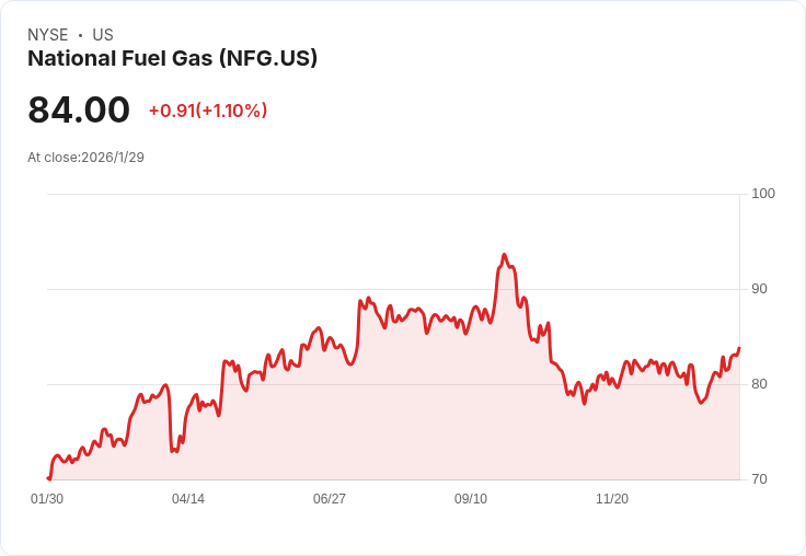 國家燃氣公司(National Fuel Gas, NYSE:NFG)近日公佈了其2026財年第一季度的財報,顯示出色的業績。首席執行官Dave Bauer指出,該公司調整後每股收益為$2.06,符合預期。他讚揚操作團隊在嚴苛冬季天候下的努力,並表示Seneca Resources運營穩定,傳輸及分配系統無重大問題。