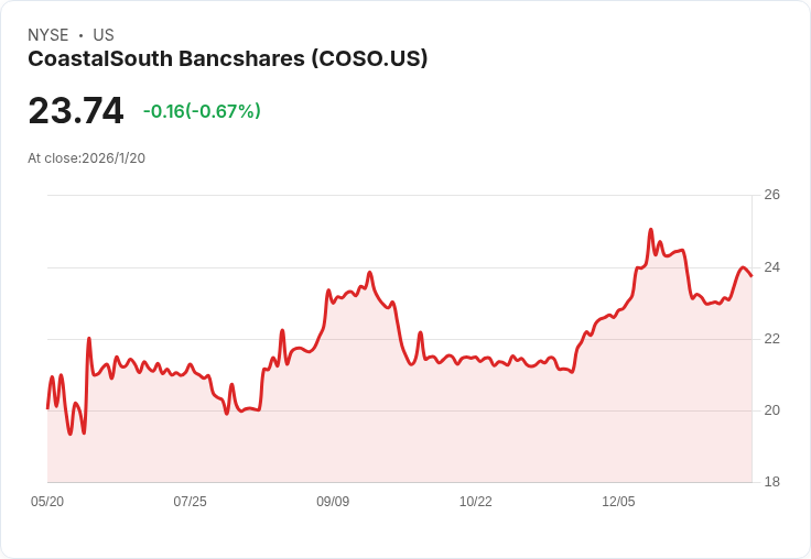 CoastalSouth Bancshares, Inc. 公佈第四季財報,每股盈餘為 $0.58,未達分析師預期,但營收 $22.16M 則優於市場預估。