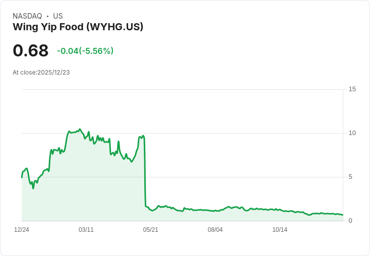 Wing Yip Food (WYHG)收到納斯達克的書面通知,因未符合最低股價要求而可能面臨退市。