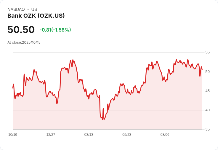 根據最新資料,OZK目前的收盤價為50.50美元,與分析師預測的公允價值57.50美元相比,顯示出明顯的低估空間。分析師指出,人口向南部地區遷移及經濟增長將為OZK提供擴大房地產和商業貸款業務的機會,進而推動收入穩定增長。然而,OZK高比例的商業不動產暴露及放貸增長乏力,可能會對其樂觀前景造成挑戰。