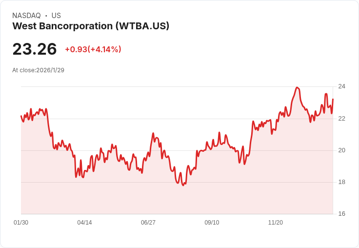 西銀行控股公司的最新財報顯示,其在2025年第四季的淨收入為740萬美元,儘管因出售6400萬美元可供出售證券而錄得400萬美元的稅前損失,若不計此項損失,第四季淨利將超過1000萬美元。該行全年的淨利較去年增加35%,達到3260萬美元,顯示出穩健的經營狀況。