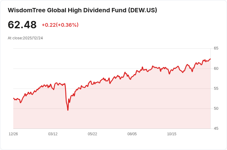 WisdomTree全球高股息基金ETF(DEW)近日宣佈,每股將派發$0.5513的季度股息,此訊息無疑為許多投資者帶來了好消息。根據公告,該股息將於12月30日支付,持股人需在12月26日之前登記,而同一天亦是除權日。