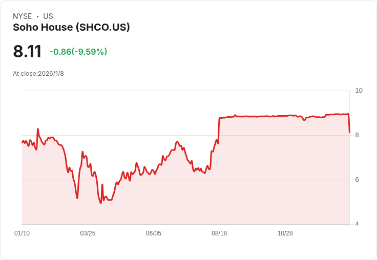 值得注意的是,Soho House早在八月份便同意以每股9美元的價格被MCR Hotels主導的投資團隊收購。隨著各方努力尋找解決方案,未來幾天內該合併案能否如期推進,將成為市場關注的焦點。