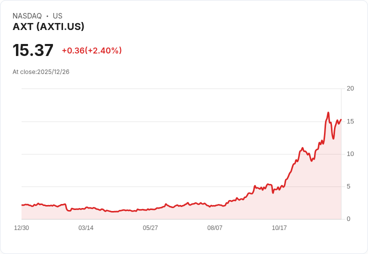 AXT(AXTI)於週一公佈了一項約8700萬美元的承銷公開發行計劃,將發售710萬股普通股,每股定價為12.25美元。此訊息引起市場關注,導致該公司股價在盤前交易中下跌15.42%,至13.00美元。