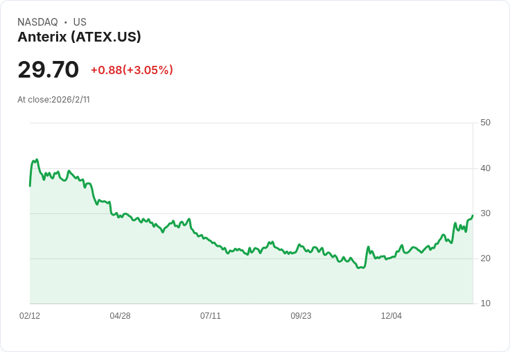 Anterix 公佈第三季財報,每股虧損 -$0.35 億元,優於預期;營收達 $1.57M,亦高於市場預估。