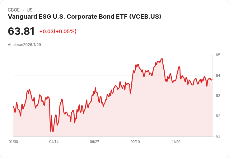 在投資者關注ESG(環境、社會及治理)標準的背景下,Vanguard ESG美國企業債券ETF(程式碼:VCEB)近日宣佈將於2月4日發放每股$0.2501的分配金。根據最新資料,截至1月28日,該基金的30天SEC收益率已達到4.65%,顯示出其穩定的現金流與吸引力。