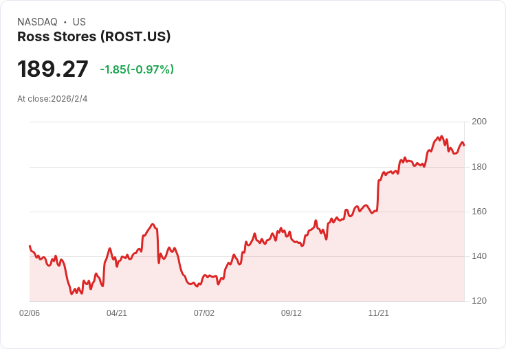 Ross Stores (ROST) 在過去三年中表現出色,其股價最近達到189.27美元,90天內回報率為18.12%,一年總回報達29.80%。這一強勁的業績使得投資者對其未來持樂觀態度。然而,目前的股價已接近普遍認可的公平價192.69美元,市場是否低估了公司的成長潛力成為熱議話題。