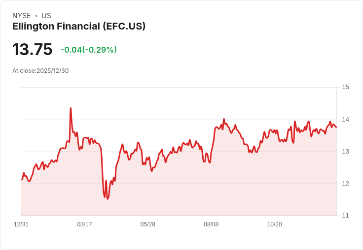 在投資者關注下,Ellington Financial(EFC)於週二發布了最新的財務數據,顯示截至11月30日的每股帳面價值為$13.17。這一訊息引起市場反應,其股價於盤後交易中上揚至$13.82,增長約0.51%。