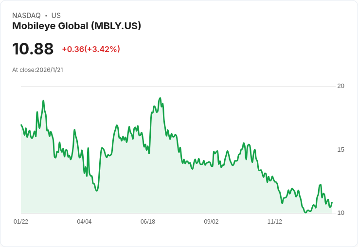 自動駕駛技術公司Mobileye在Q4 2025的營收超出華爾街預期,但年增率下降9%,且全年指引低於分析師預測,股價隨即回落。