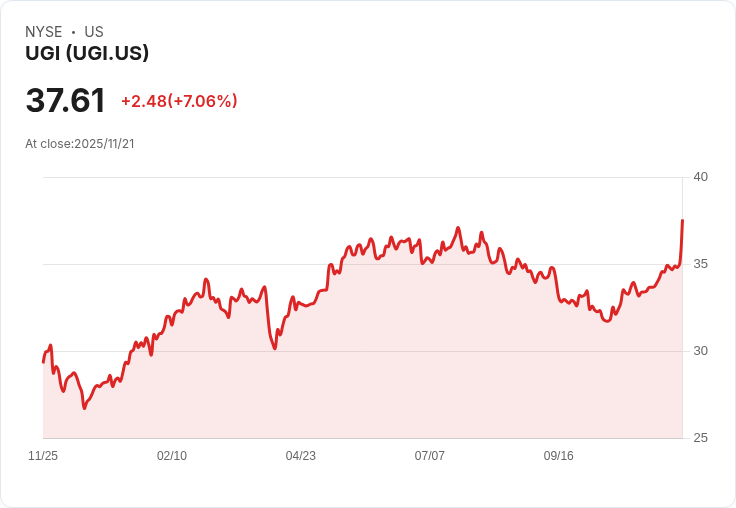 然而,儘管股價已經大幅上漲,UGI仍然被認為相對於其基本面是否被低估?目前UGI收盤價為37.61美元,而市場普遍認為其公允價值應在41美元之間,顯示出當前價格與共識預測之間的明顯差距。此情況吸引了許多投資者的注意,尤其是在考慮到公司在分拆及監管方面的成功所帶來的盈利質量與財務靈活性時。
