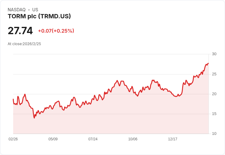 丹麥航運公司TORM(TRMD)近日宣佈將於2026年3月25日支付每位股東每股 $0.70 的中期股息,此次分紅金額反映出該公司堅持的82%淨利潤分配政策。根據公告,所有在2026年3月12日登記的股東均可獲得此次股息,而除息日期則為2026年3月11日(在哥本哈根證券交易所上市的股票)及2026年3月12日(在紐約證券交易所上市的股票)。