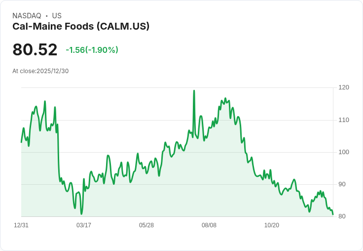 隨著蛋品產業基本面的惡化,Cal-Maine Foods(CALM)股價近期跌至15個月來的新低。根據Stephens的分析師Pooran Sharma指出,這一情況促使他將Cal-Maine的價格目標下調了9%,至95美元。從7月份的高點起,該公司股價已經回落超過36%。