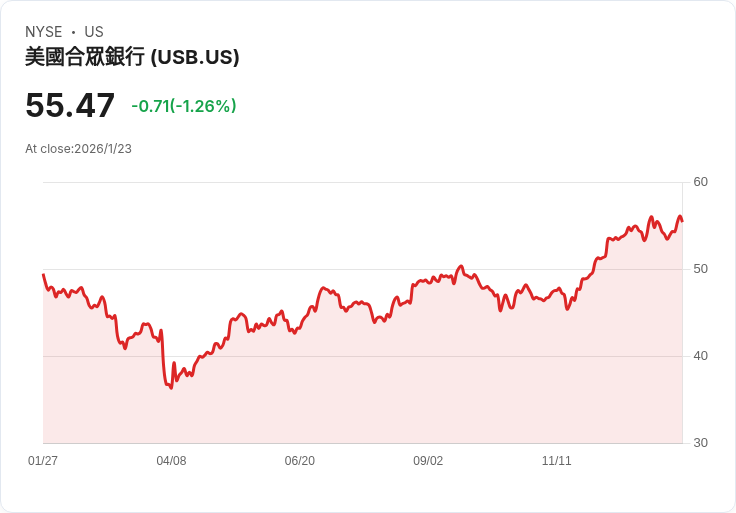 在金融界引起廣泛關注的訊息中,TD Cowen於1月21日將U.S. Bancorp(NYSE:USB)的目標價格從65美元上調至66美元,並維持買入評級。該公司第四季度核心每股盈餘達到1.26美元,超出預期,淨利息收入及費用表現均優於市場預測,顯示出良好的成本控制與運營槓桿。