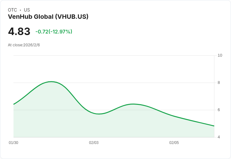 VenHub Global (VHUB) 在週一交易中股價大跌,創下自納斯達克直接上市以來的新低,面臨市場挑戰。