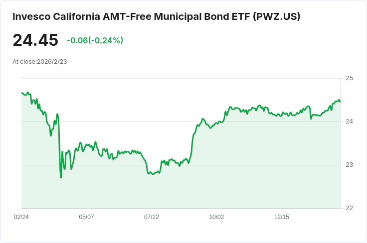 Invesco California AMT-Free Municipal Bond ETF (PWZ) 宣佈將於2月27日支付$0.0755的每月分配,為股東帶來穩定收益。