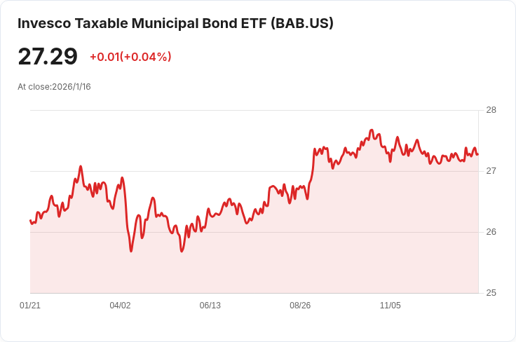 Invesco可課稅市政債券ETF(BAB)將於1月23日支付每股$0.0916的分配金,吸引投資者關注。