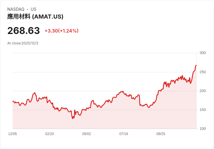 隨著半導體市場的回暖,TD Cowen對Applied Materials(AMAT)的前景表示樂觀。分析師Krish Sankar領導的團隊將其股票目標價從260美元提高到315美元,並指出該公司在DRAM和先進製程方面擁有約50%的市場份額。根據分析,非中國地區的DRAM晶圓廠裝置需求預計在2026年將增長17%,甚至可能達到20%。儘管NAND裝置未來兩年的增長潛力也被提及,但分析師認為目前DRAM裝置的需求更具優勢,因為主要供應商如三星電子、微軟科技及SK海力士均不打算增加產能。此外,隨著多個新項目的推進,包括三星的P4和Micron位於愛達荷州的設施,市場信心持續增強。Applied Materials的股價週四上漲約1%,顯示出投資者對其未來表現的期待。在半導體裝置製造商中,Applied Materials仍然保持估值優勢,這使得它成為業內關注的焦點。