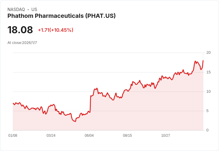 Phathom製藥宣佈將發行688萬股股票,價格每股16美元,但其股價在預售期間下滑12%。