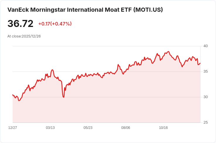 VanEck Morningstar國際護城河ETF (MOTI) 宣佈每股配息$1.1821,投資者可於12月26日領取。