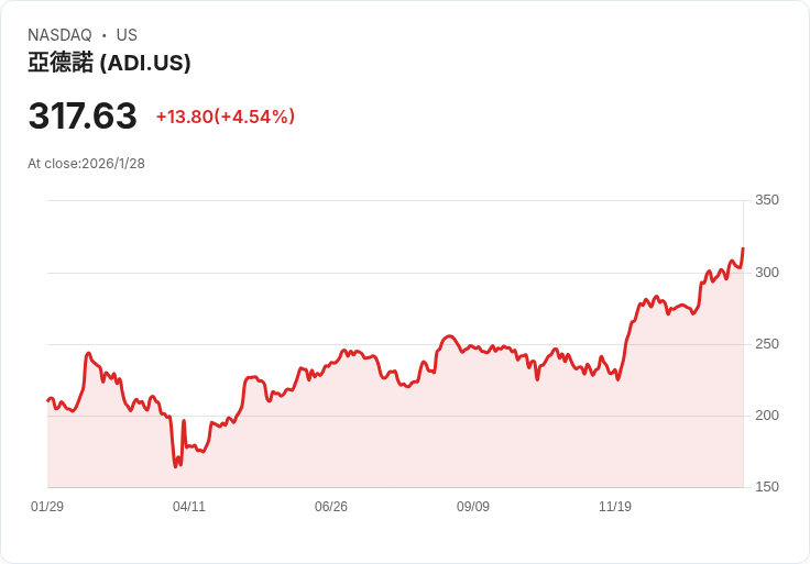 報告指出,ADI健康的毛利率達61.5%,負債水平適中,但與同業相比,其毛利潛力有限。然而,工業部門的超過平均毛利預期將隨時間推進而增加。此外,分析師預測,ADI在2月25日公佈財報時會有強勁表現,2026財年的每股盈餘預估為9.91美元。
