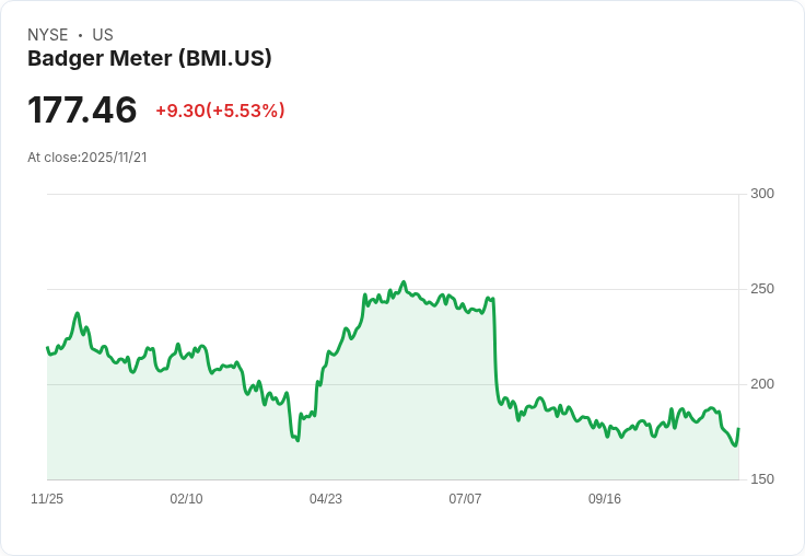Badger Meter(BMI)近期發布的第三季財報表現超出市場預期,受益於公用事業水銷售增長及智慧水管理產品需求上升,公司同時調高了其毛利率展望,顯示出持續投資和戰略併購的成果。在經歷了一個挑戰性的一年後,Badger Meter的股價開始逐漸企穩,單日上漲5.5%,但年初至今仍下滑16.2%。儘管短期情緒波動,其三年和五年的總股東回報分別達到55%和125%,顯示長期投資者的動能依然存在。