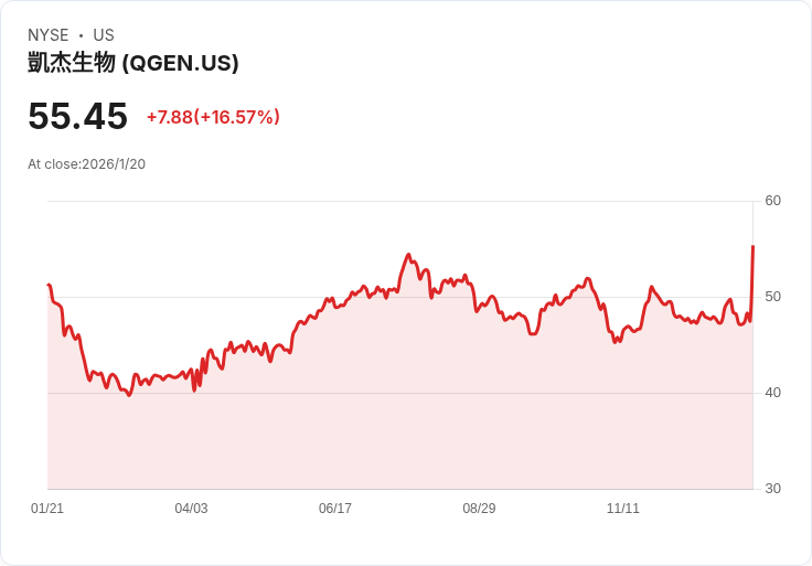 隨著市場傳出收購訊息,阿基朗和丹哈赫被分析師視為可能的買家,Qiagen股價大漲19%。