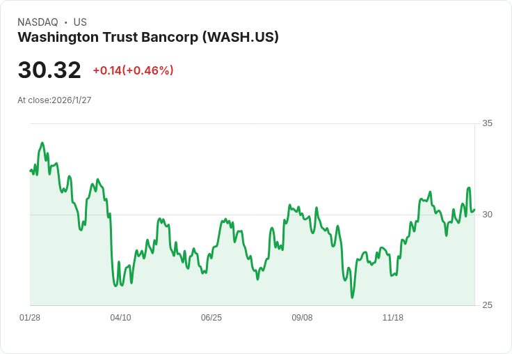 華盛頓信託銀行(Washington Trust Bancorp, WASH)將於2025年1月28日市場收盤後發布其第四季度的財報,引發投資者關注。根據市場共識,每股盈餘(EPS)預計為0.75美元,同比增長高達121.7%,而營收則預估為5638萬美元。