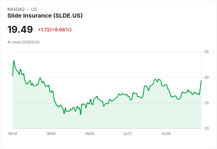 Slide Insurance預計在2026年實現185億至195億美元的保險保費及4.55億至4.7億美元的淨利,並將擴充套件至新市場。
