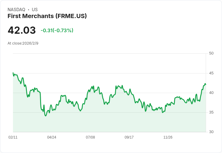 First Merchants (FRME) 宣佈季度股利為每股 $0.36,持平於先前水準,預期將於 3 月 20 日支付。
