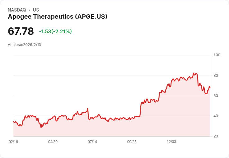 Apogee Therapeutics (NASDAQ:APGE) 的股價在過去一年中上漲了86.9%,引起投資者的廣泛關注。根據2026年2月13日的SEC檔案,Affinity Asset Advisors最近增持了61,500股Apogee,這筆交易估計達到387萬美元,使該基金在Apogee的總持股數量達到1,234,926股,市值高達9300萬美元,佔其管理資產的6.9%。