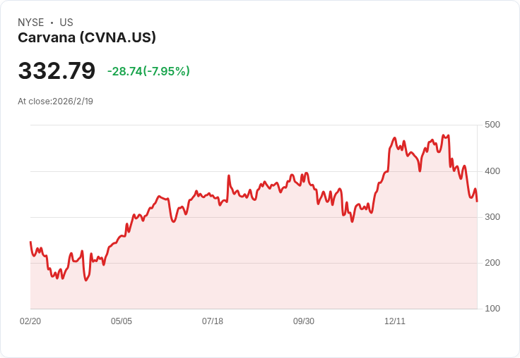 Carvana(CVNA)在最新公佈的第四季度財報中,儘管年收入創下58%的驚人增長,卻未能激起市場期待的反彈,反而因無法將增長轉化為穩定獲利,導致股價開盤即暴跌超過20%。雖然零售車輛銷量上升43%,但經調整EBITDA僅511百萬美元,低於預期近3000萬美元,且EBITDA利潤率縮減至9.1%。