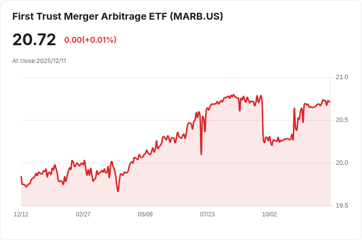 First Trust併購套利ETF(MARB)近日宣佈將發放每股$0.1328的季度股息,此舉引起市場關注。該股息的前瞻性收益率為2.56%,顯示出其穩定的回報潛力。根據公告,這筆股息將於12月31日支付,記錄在案的股東需在12月12日前持有股票,而同一天也將成為除息日。