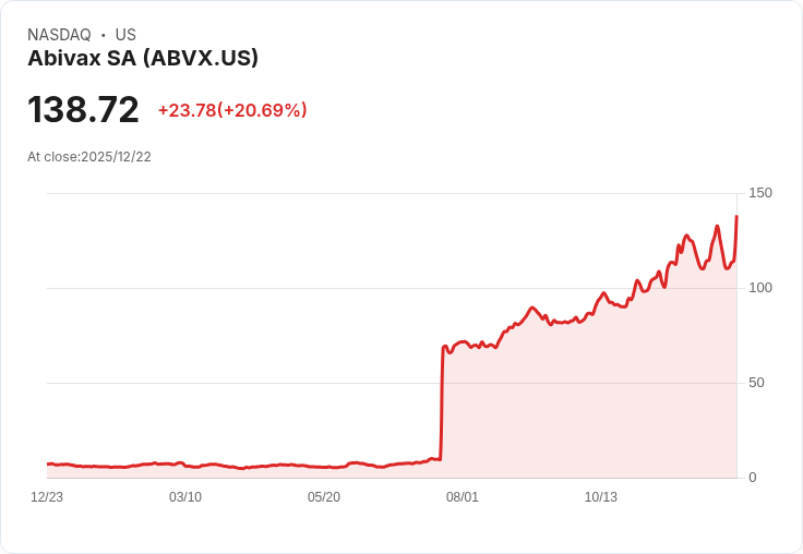 ABIVAX在2025年以+1,470.22%的驚人績效領先所有生技股票,顯示出強勁的市場潛力。