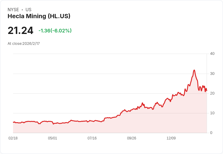 海克拉礦業公佈第四季財報,每股盈餘達0.20美元,超出市場預期,營收增至448.11百萬美元,顯示公司持續強勁表現。